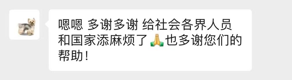 心里石头落地后,最初的求助者赵培宝女儿发了一条朋友圈:多谢多谢,给社会各界人员和国家添麻烦了!也多谢您们的帮助!